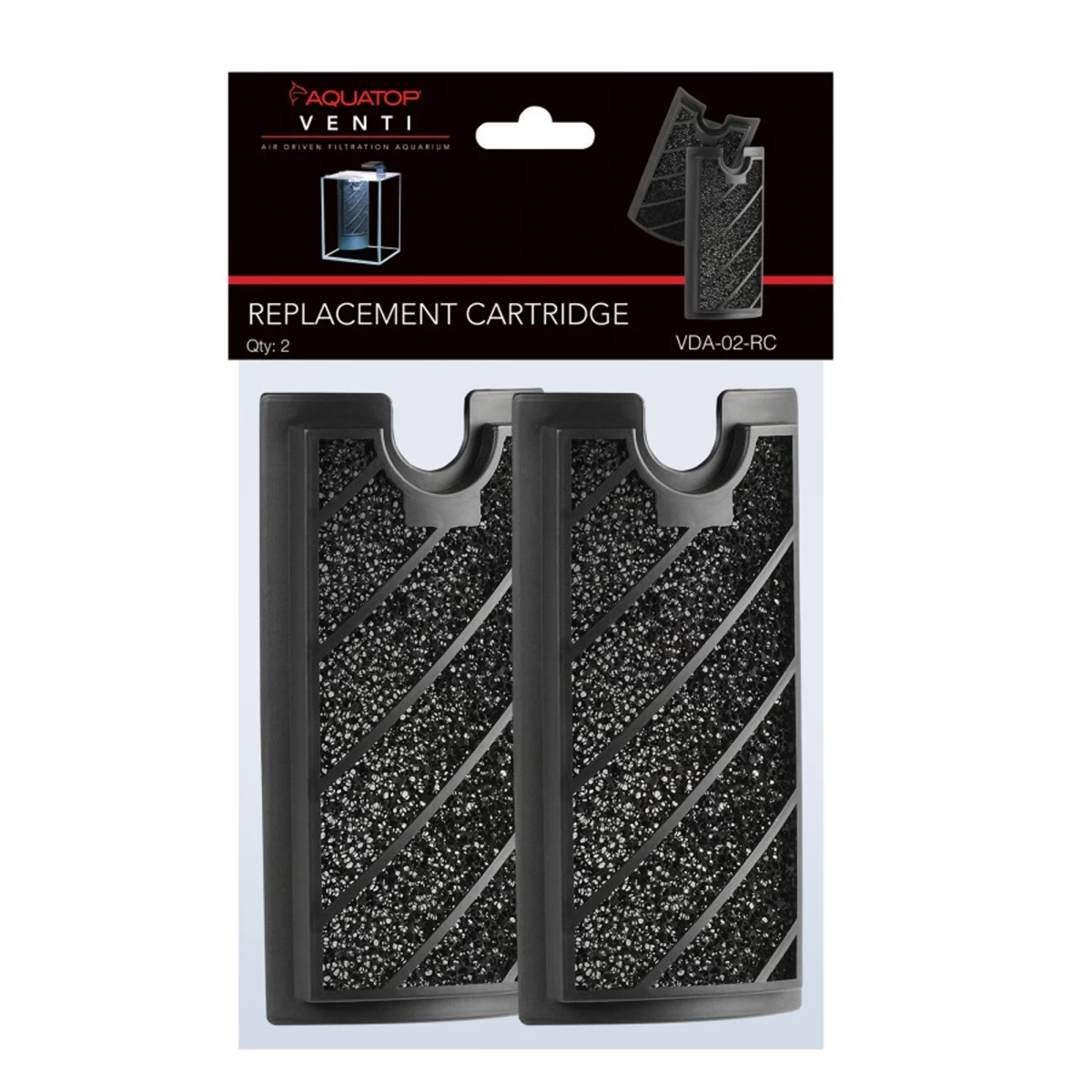 The Aquatop Venti Replacement 2-pack is the only cartridge specifically designed for the Venti Professional Showcase Aquarium. This combination of small porosity polymer floss and premium carbon will maintain the ideal aquatic environment with a fresh cartridge every month. Each package is a 2 month supply.