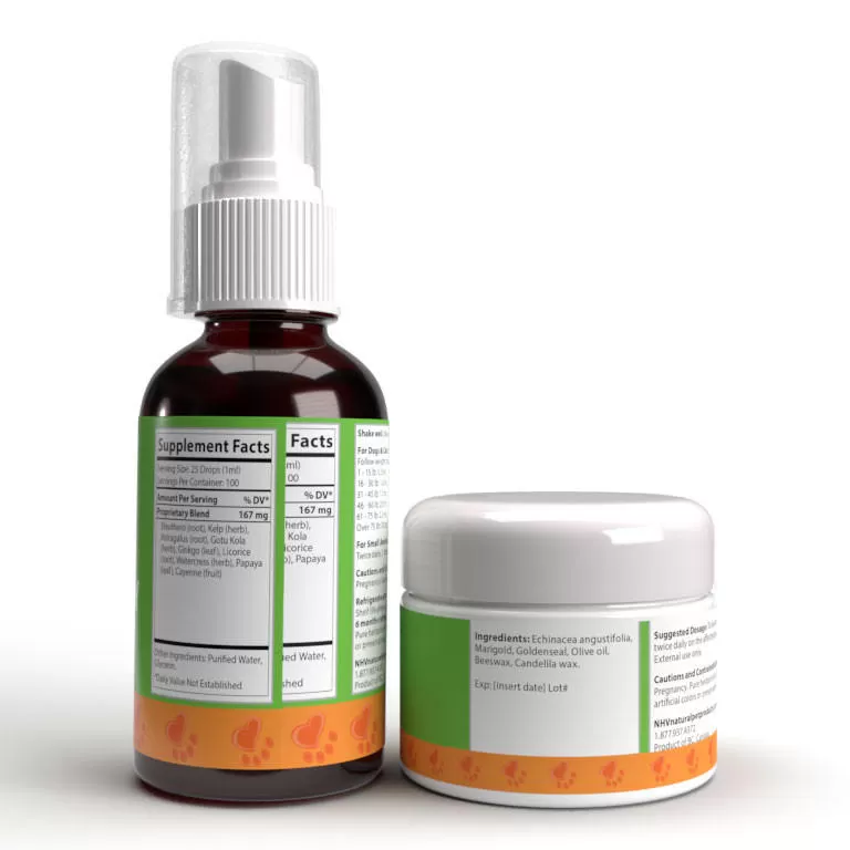 Your dog, cat, or other pet is bound to experience wounds, cuts, or scrapes in their lives. As a pet parent, it is important to keep your pet’s wounds as clean as possible to help speed and prevent infection. Use the NHV First Aid Spray plus NHV All Clear Ointment as a natural and holistic way to help heal your pet’s wounds or skin infections quickly.