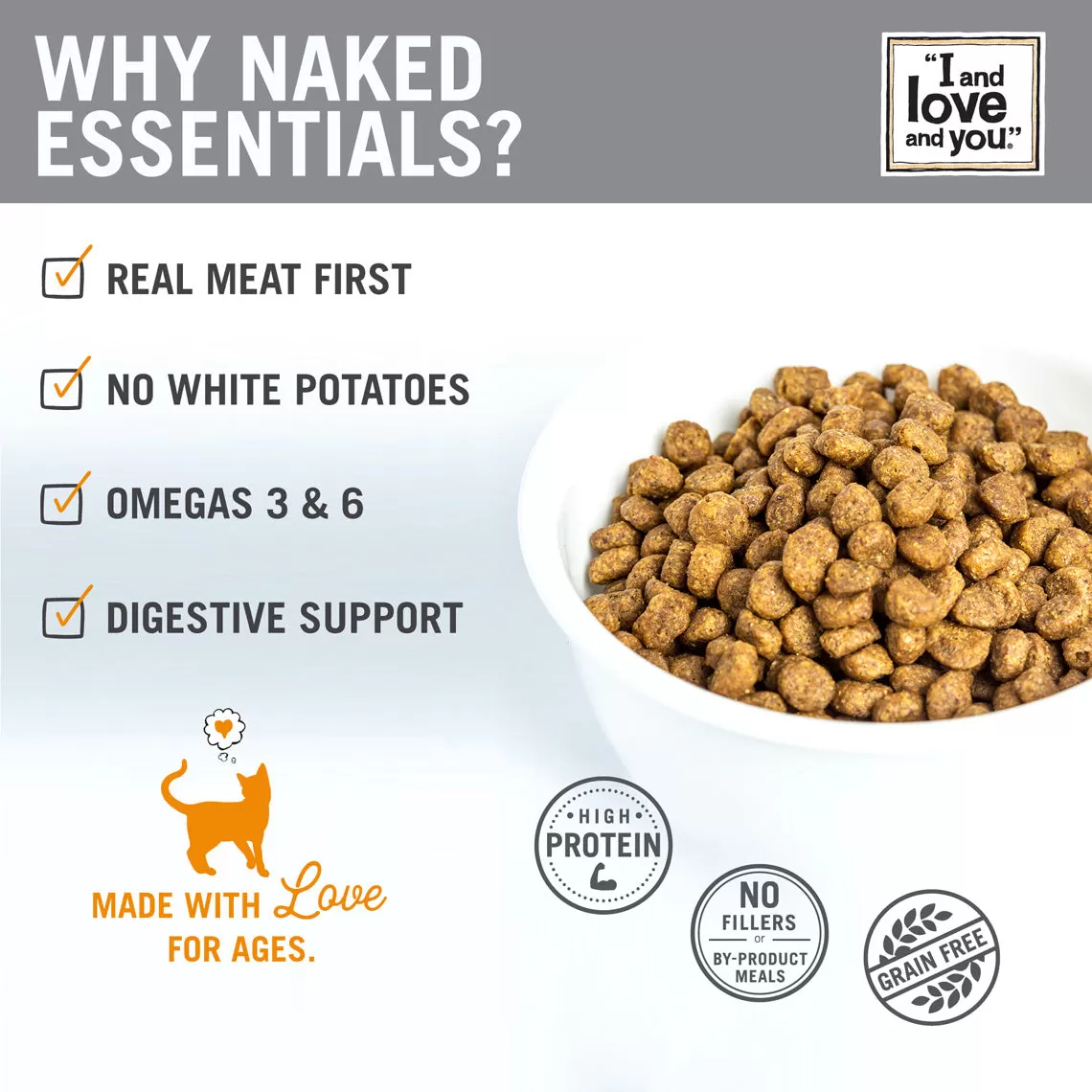 Keep your feline’s diet healthy and natural with I and Love and You’s Naked Essential Kibble for Cats.