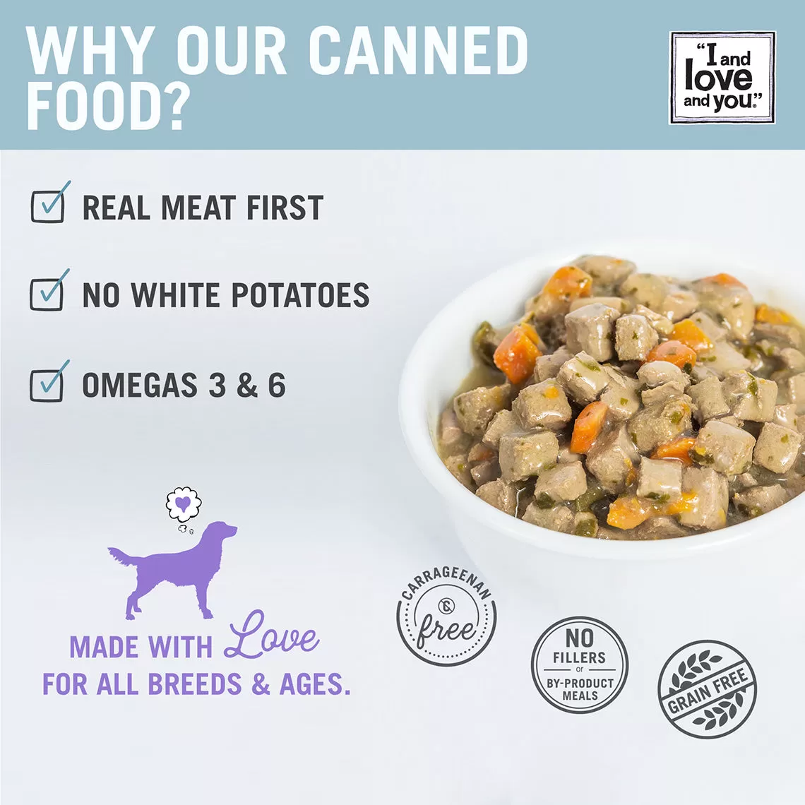 “I and love and you” understands and respects the bond you have with your dog. That’s why they set out to make the highest quality food on the market. They care about your dog’s health as much as you do.