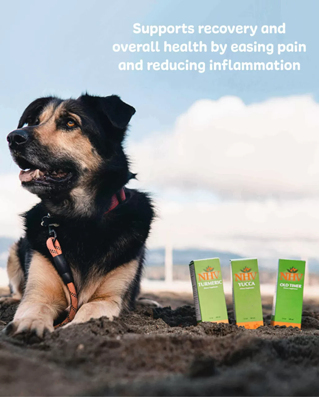 You may notice minor changes in your dog or cat’s behavior, like resting longer or difficulty getting up. Kitties that stop hopping onto their favorite perch or pups who aren’t as energetic about jumping into the car for rides may be suffering from joint issues. As their paw parent, you will want to reduce discomfort and inflammation, improve circulation and support their immune system so that they can bounce back in record time! In severe cases of joint injury or arthritis, limping or muscle atrophy (muscles wasting away) can unfortunately happen. NHV Muscle Pain Kit 1 contains Yucca, Old Timer and Turmeric. Yucca contains natural steroid-like properties that soothe discomfort and inflammation, while Old Timer’s proprietary herbal blend is beneficial for immune support and circulation. And Turmeric has effective anti-inflammatory properties.
