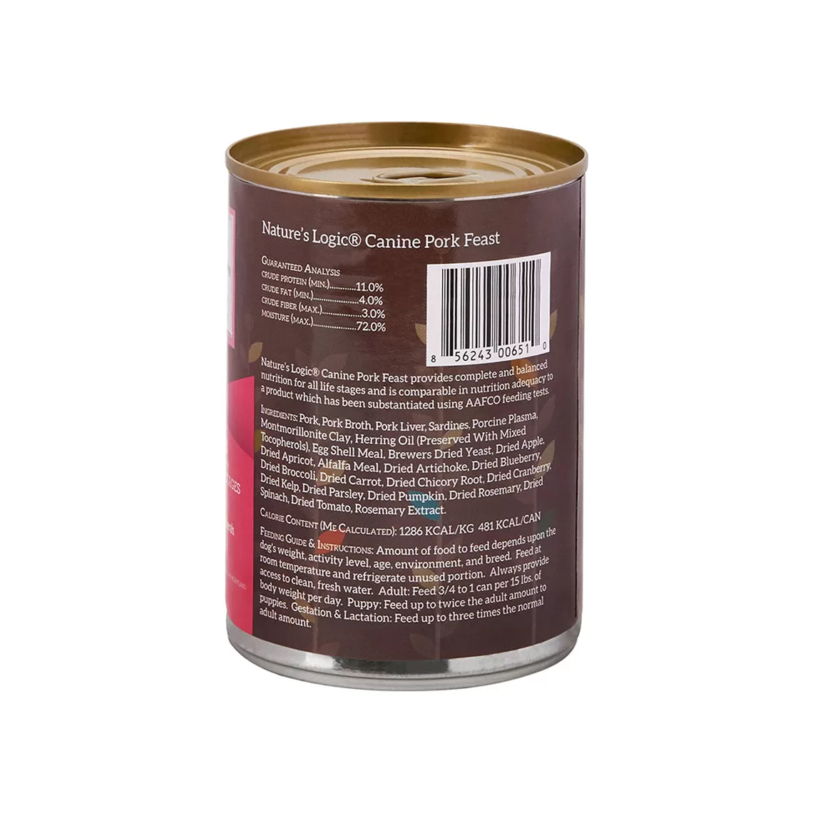 Nature’s Logic Canine Pork Feast is a highly palatable and nutrient dense muscle meat and organ meat based canned food that uses whole ingredients and never includes synthetic ingredients.