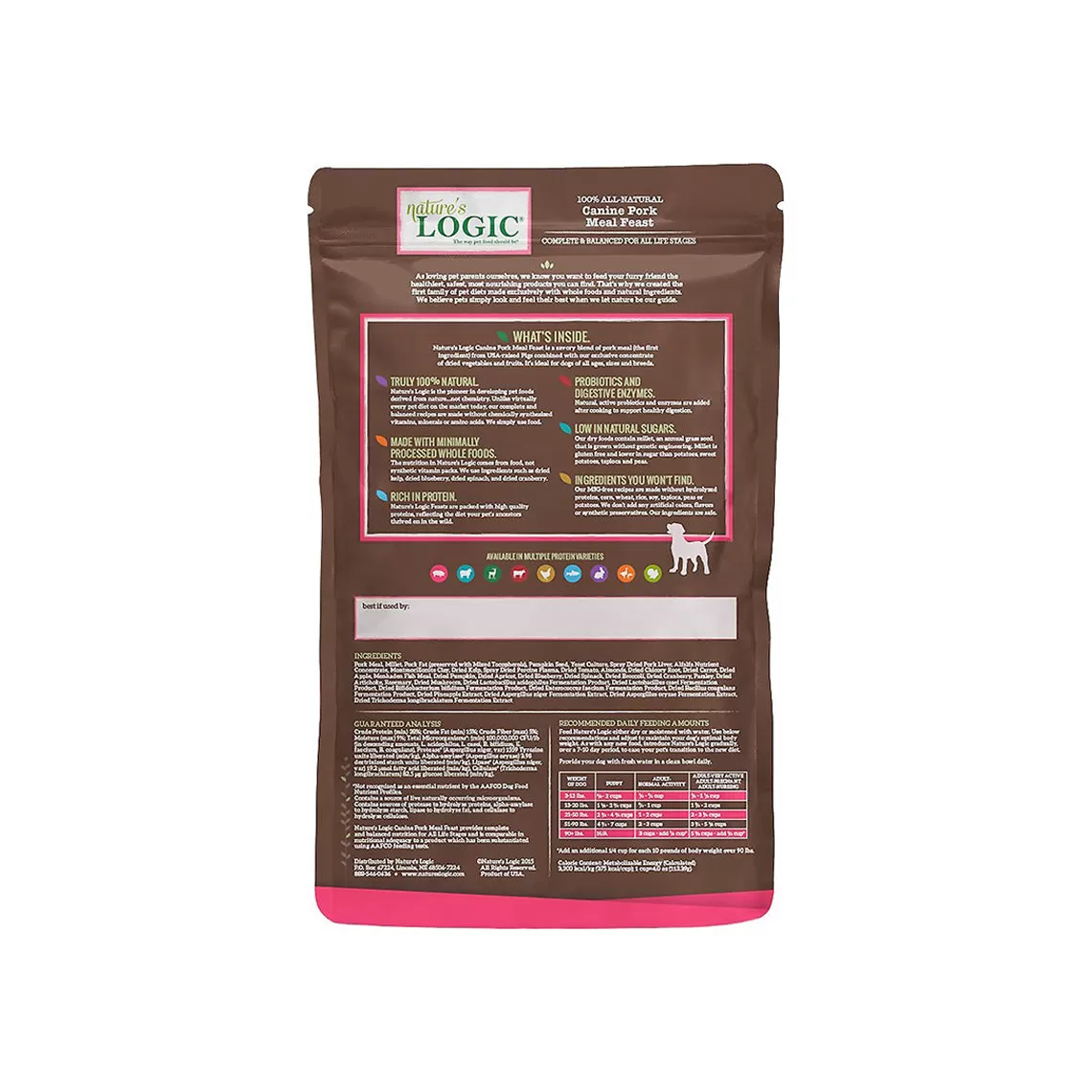 Nature’s Logic Canine Pork Meal Feast is a savory blend of pork meal (the first ingredient) from USA-Raised Pork combined with our exclusive concentrate of dried vegetables and fruits.