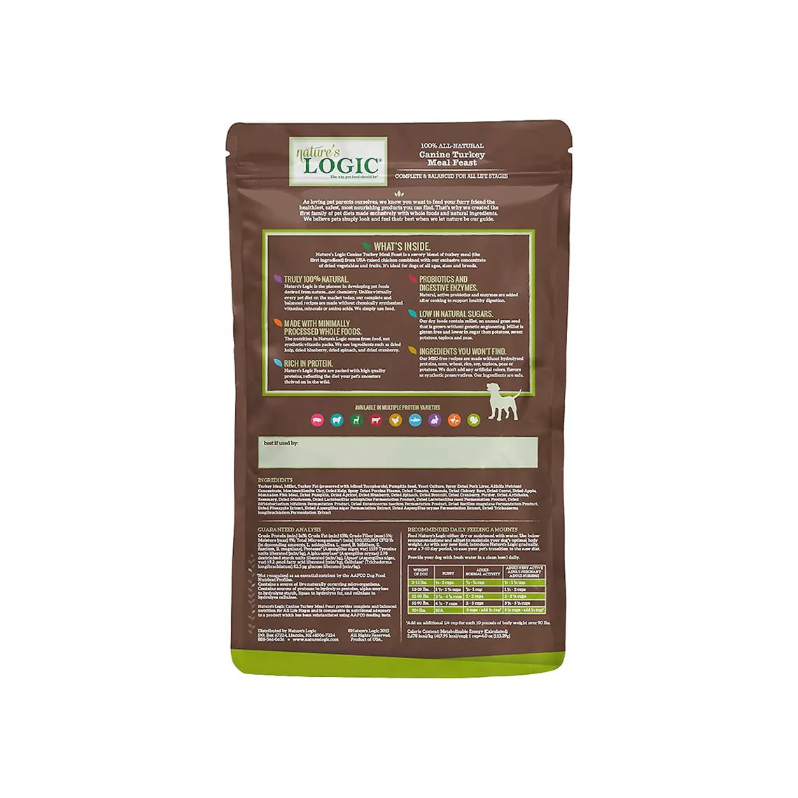 Nature’s Logic Canine Turkey Meal Feast is a savory blend of turkey meal (the first ingredient) from USA-Raised turkey combined with our exclusive concentrate of dried vegetables and fruits.