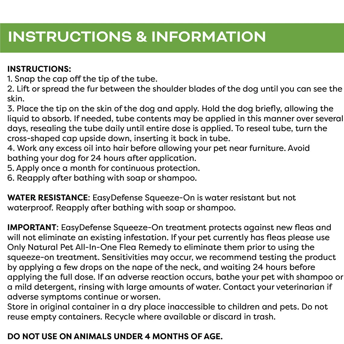 EasyDefense Flea & Tick Squeeze-On for Dogs uses plant-based active ingredients to effectively kill and repel fleas, ticks and mosquitos and to prevent bites, rashes and hot spots. This topical formula is easy to apply and contains no synthetic pesticides, ensuring natural, effective long-term protection.