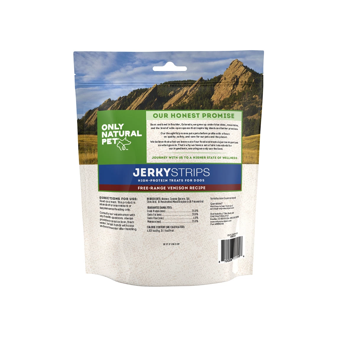 Only Natural Pet Jerky Strips Venison Dog Treats are grain free dog treats made with single protein sources, making them ideal for dogs with common allergies. By utilizing novel protein sources, including venison and bison these treats allow for delicious snacking that won’t aggravate food sensitivities. Plus, they’re all natural and have no artificial colors, flavors or preservatives.