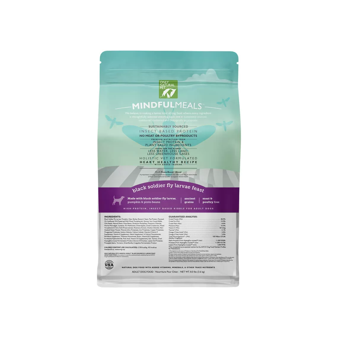 The ultimate in sustainable nutrition, insects are the clean protein source that benefits your dog – and our earth. Low impact and high protein, Only Natural Pet MindfulMeals is an extraordinary recipe that minimizes the impact of your dog’s food on the environment while providing the vital energy and nutrients your dog needs to thrive.