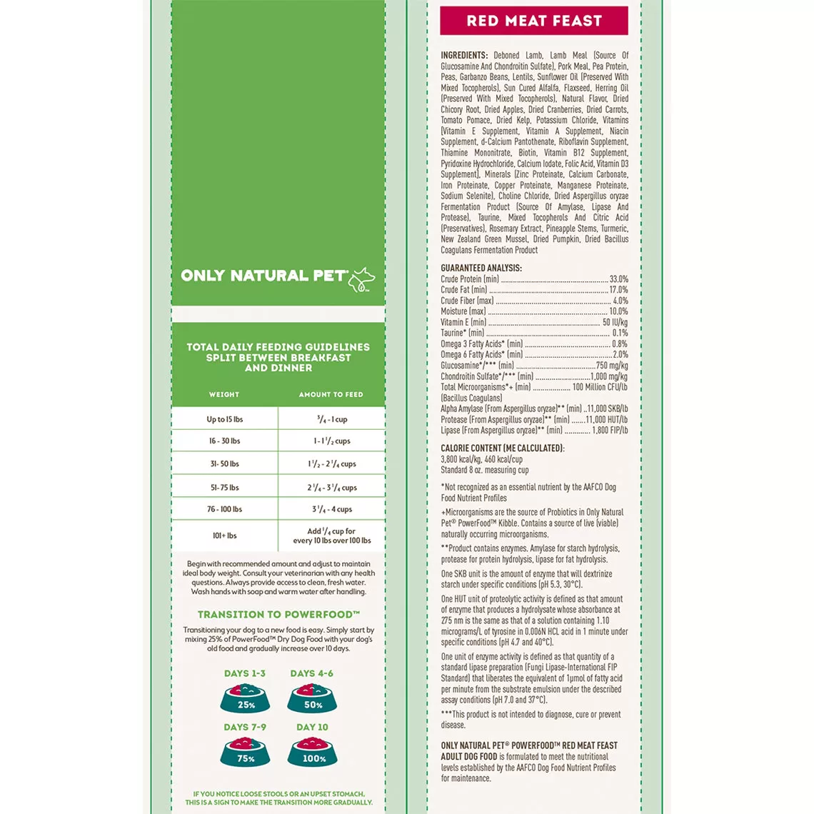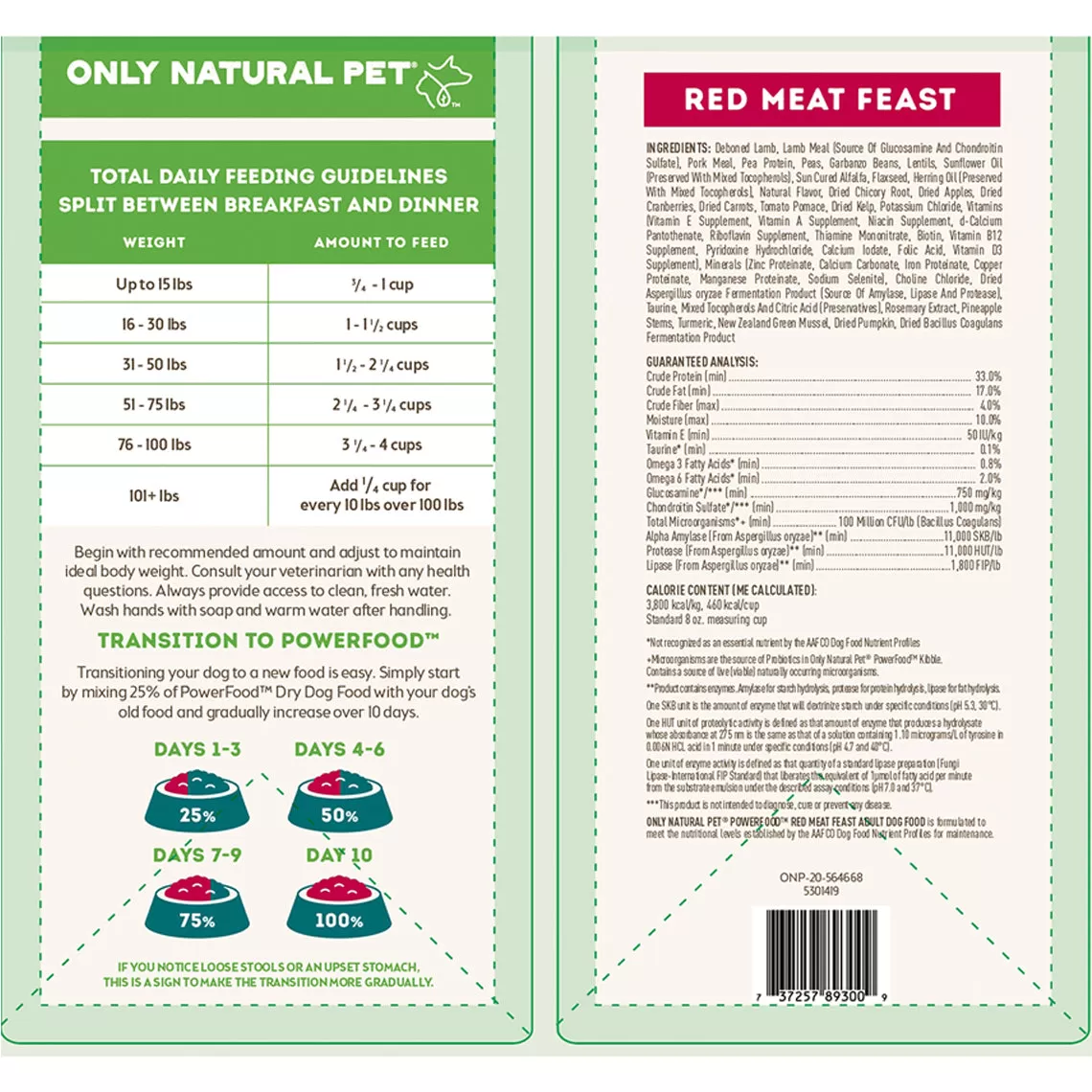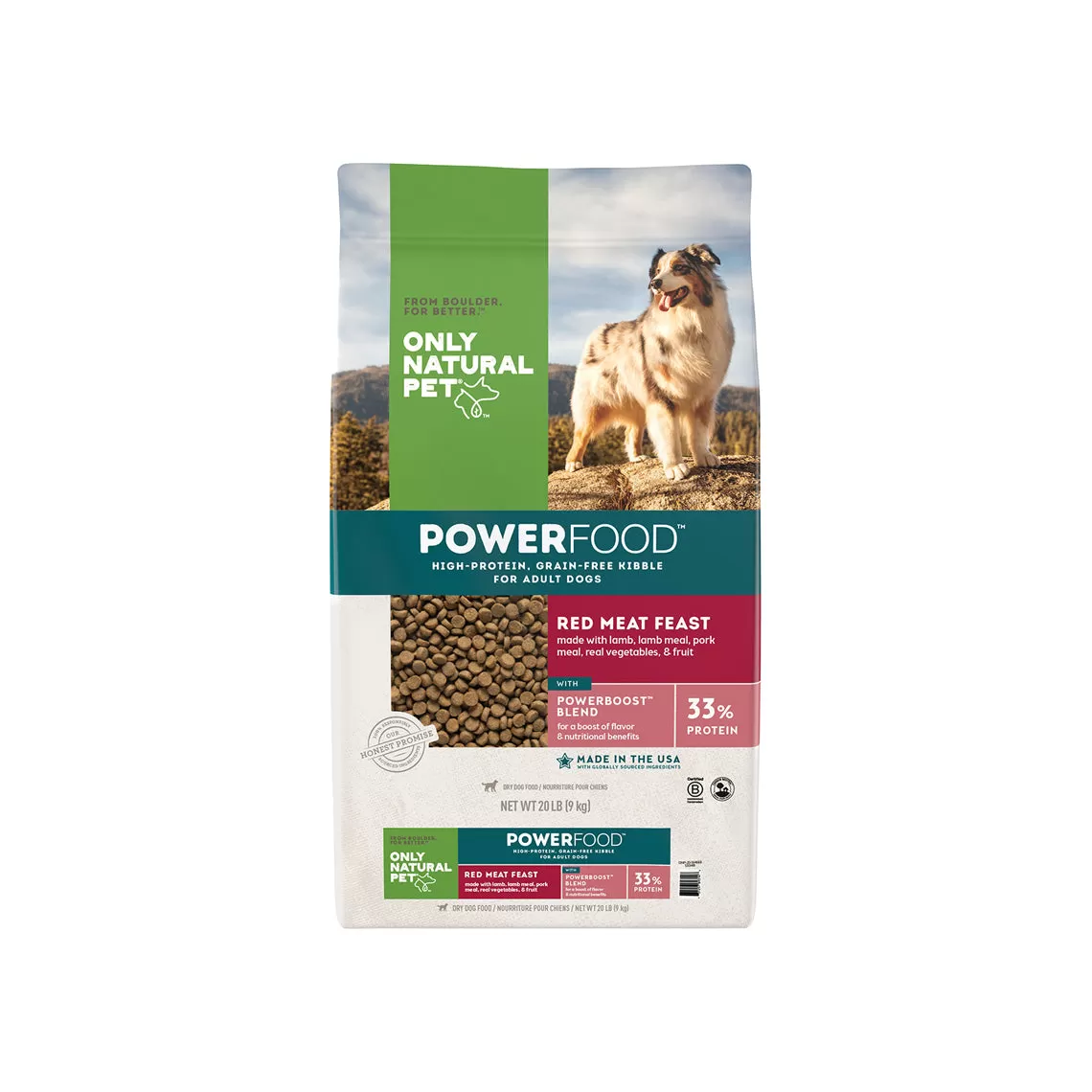 Discover the health and nutrition benefits of Only Natural Pet PowerFood Red Meat Feast Dog Food today.