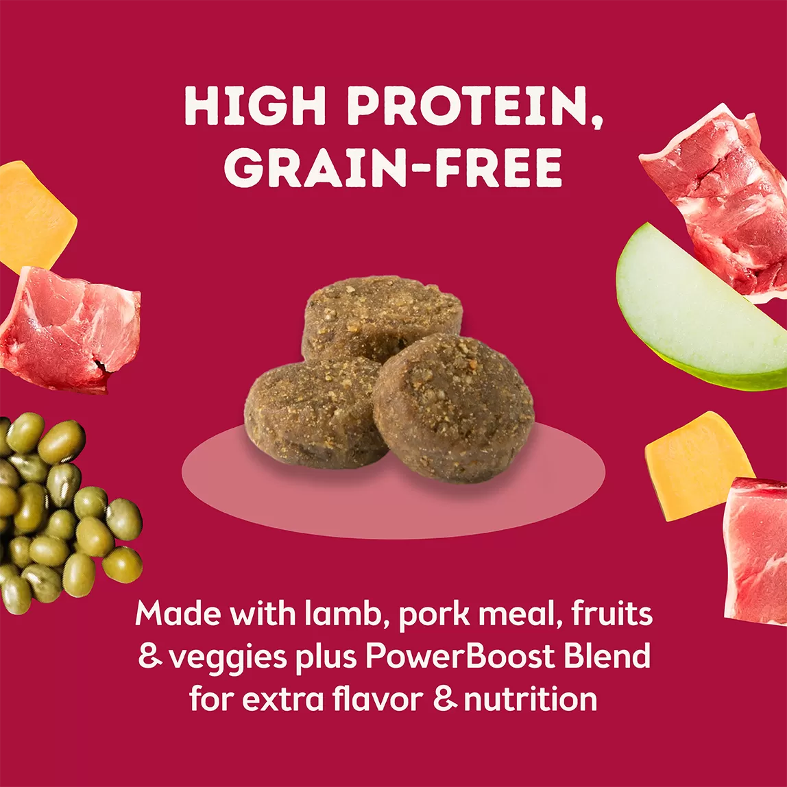 Made in the USA, PowerFood Red Meat Feast Dog Food is naturally high in protein and is formulated with holistic health in mind to offer joint support from glucosamine and chondroitin, essential fatty acids for skin & coat, and a blend of protein and fat for balanced energy. It features added taurine for heart health, and our PowerFood blend, a proprietary coating that offers your dog a delicious boost of flavor and probiotics to help support a healthy gut and vibrant health.