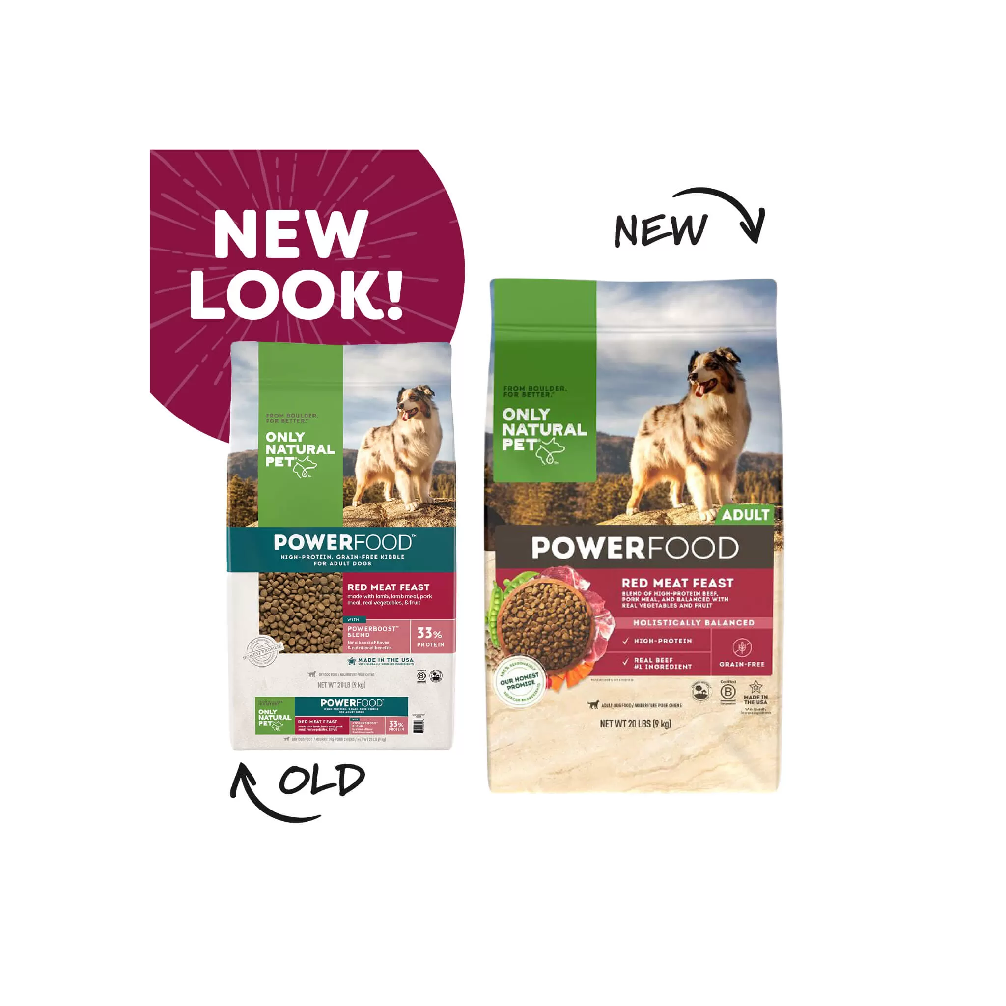 PLEASE NOTE: PowerFood Red Meat Feast Dog Food has been reformulated to be Only Natural Pet PowerFood Red Meat Feast Grain Free Dog Food.