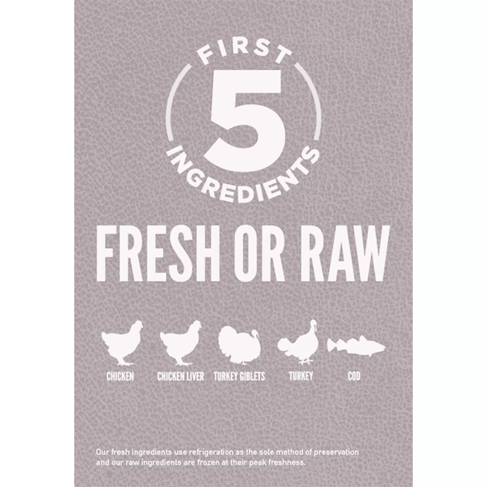 Every recipe of Orijen Grain-Free Dog Food starts with the highest quality meats sourced from regional farming partners delivered fresh daily. These include meat, organ meat and cartilage, giving your dog a natural, whole prey diet. Added to this are nutrient dense, antioxidant rich fruits and vegetables and a botanical blend of herbs which support overall health and bridge the gap between complete nutrition and physical well-being.