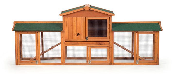When your rabbits want to cozy up for a little nap, the elevated hutch lets them hide away and feel safe & secure. When they’re feeling active and frisky, there’s plenty of room in this beautiful 7-foot long hutch to hop around. Four doors with barrel bolt locks allow access to all areas of the enclosure, and a removeable tray for the hutch floor allows for regular cleaning.