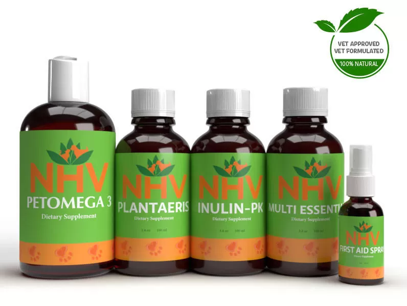 Bringing home a new furry friend is one of the most thrilling feelings in the world! It is essential that your home is appropriately pet-proofed and that you get everything you need for the smoothest start— including the right diet plan, and supplements. Of course, when a new puppy or kitten comes home, that’s when reality sets in, and you realize just how much work it is to take care of this little bundle of joy! Puppies love to chew and eat everything in sight, and kittens will hide anywhere they will fit! For all of the shenanigans that your little furbaby is bound to get into, we recommend adding natural supplements to their daily meals as soon as they are vaccinated and weaned. This proactive care plan is beneficial for supporting their overall well-being and giving them a healthy start. It may even be beneficial in slowing down or preventing disease (which may develop due to age, genetics, environment, or poor nutrition). NHV Puppy and Kitten Starter Kit contains Inulin-PK (a deworming aid), Multi Essentials (natural plant-based vitamin and mineral support), Petomega 3 (omega-3 fish oils), Plantaeris (diarrhea support) and First Aid Spray (for minor cuts and wounds).