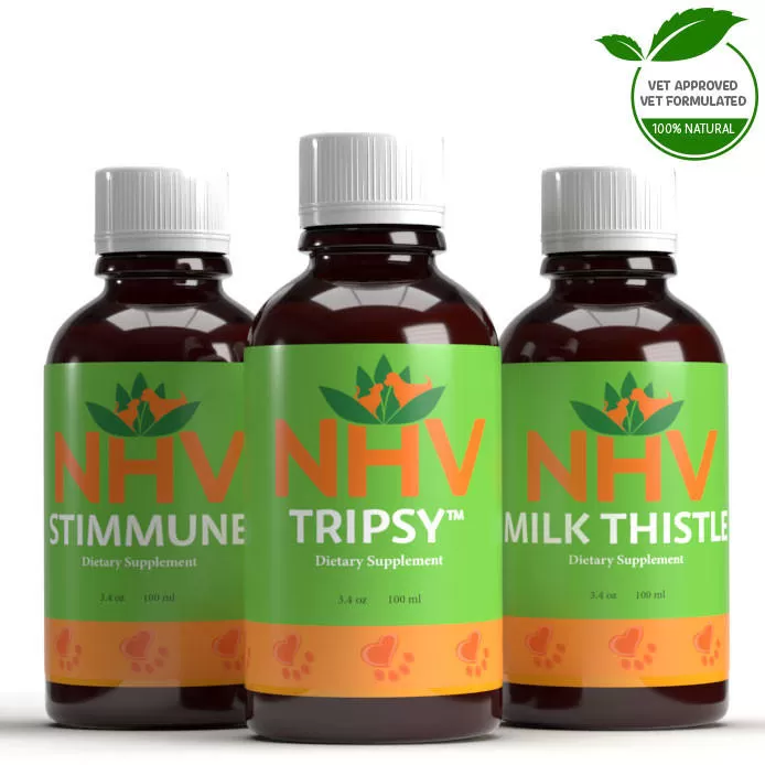 No pet parent wants to hear about their little one suffering from kidney disease. The scary part is that our furry friends often won’t show any symptoms until at least 75% of one or both kidneys is damaged. Don’t worry though! Our Renal Health Kit offers comprehensive renal support for your pet and can be used as precautionary care. Tripsy™ contains a soothing blend of herbs like Echinacea purpurea, Gravel root, Marshmallow, Parsley piert, Stone root and Wild hydrangea that support healthy kidney function, waste removal (urinary health) and soothing inflammation. Milk Thistle works to support gentle detoxification in the liver and kidneys as well as increase immunity. Stimmune contains ingredients like Astragalus, Echinacea, Oregon grape and Myrrh used traditionally to restore healthy immune function and fight infection, while herbs like Asian Ginseng are beneficial for improving overall vitality (increased energy) and helping the body adapt to stress (may reduce nausea).
