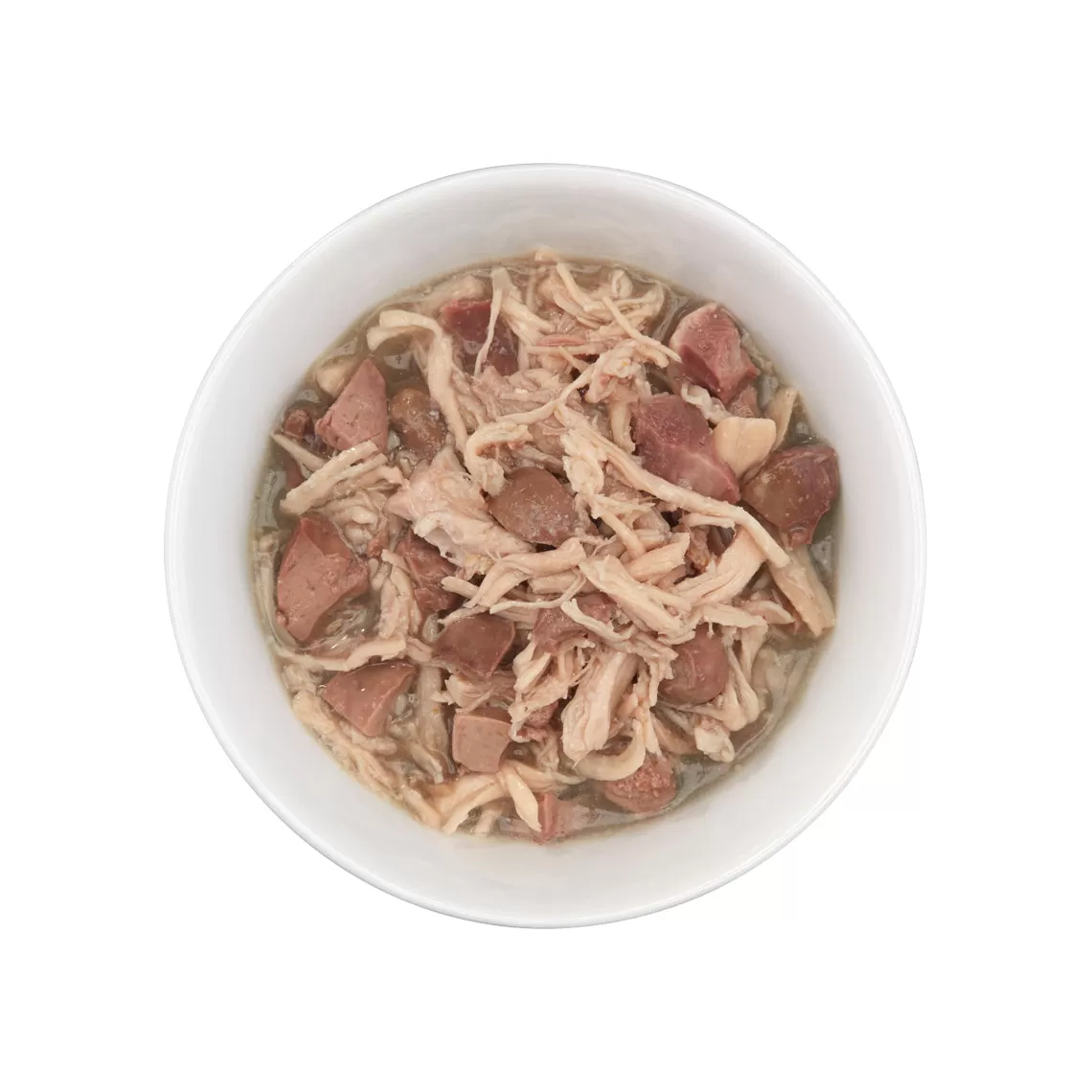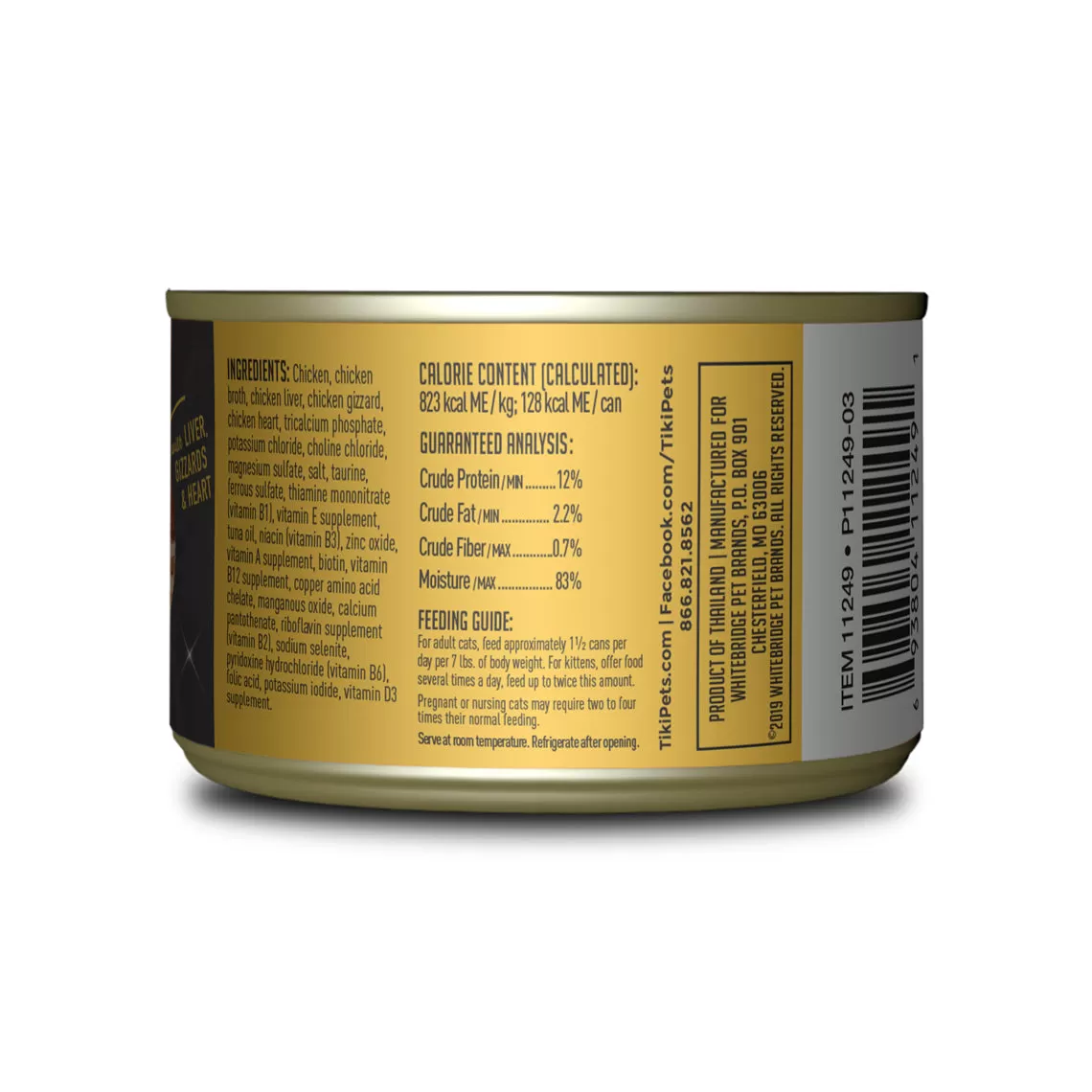 Tiki Cat After Dark Canned Cat Food features delicious shredded meats with chunky liver, gizzards, and heart for added hydration, texture, and flavor.
