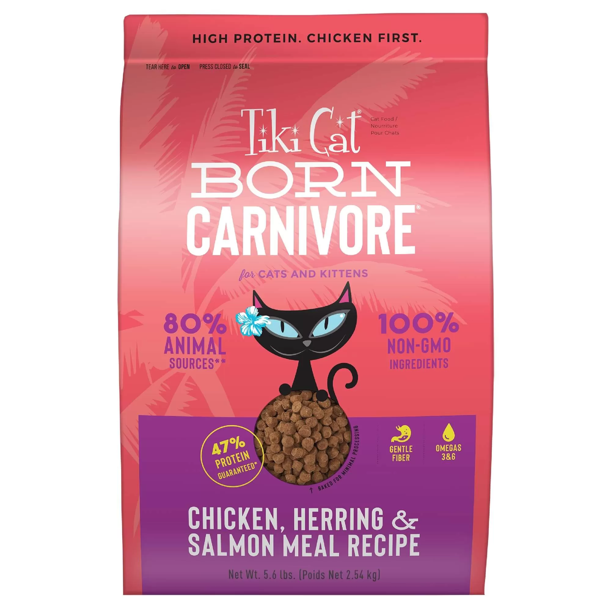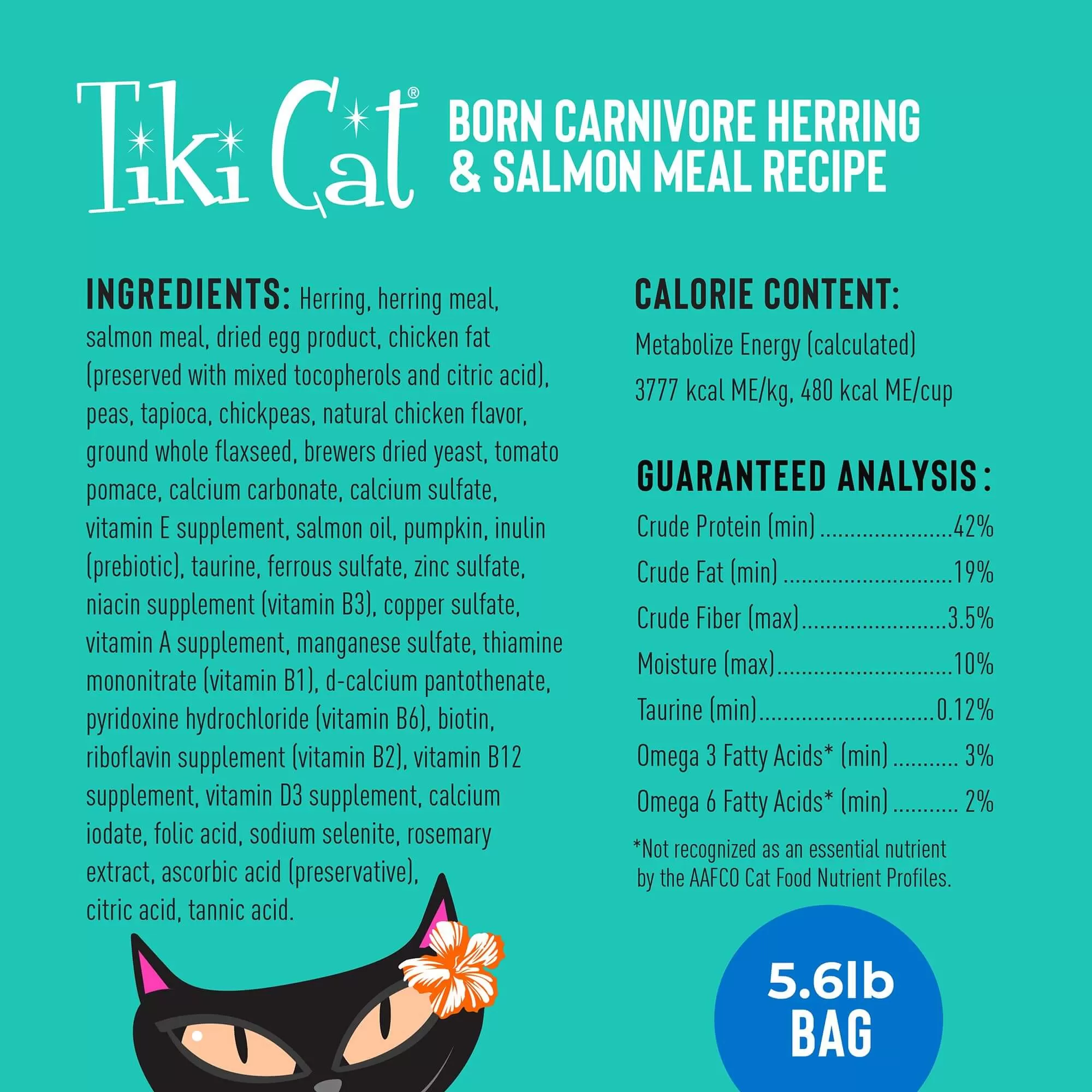 Tiki Cat Born Carnivore Dry Cat Food is a high protein, nutrient rich baked kibble that features high quality fish and poultry.