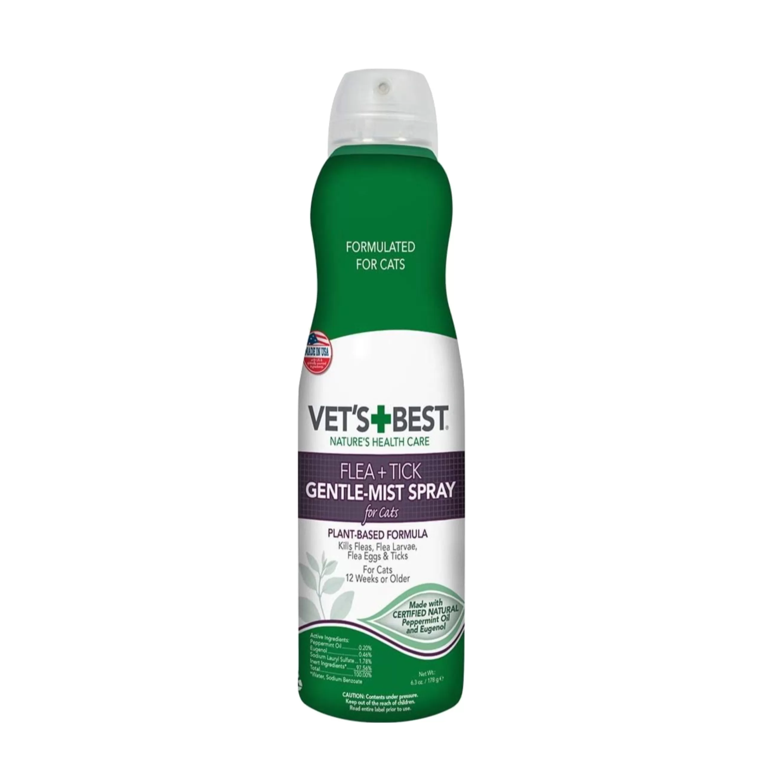 - Vet’s Best Flea and Tick Gentle-Mist Spray for Cats kills fleas, flea eggs, and ticks by contact. Also repels mosquitoes!