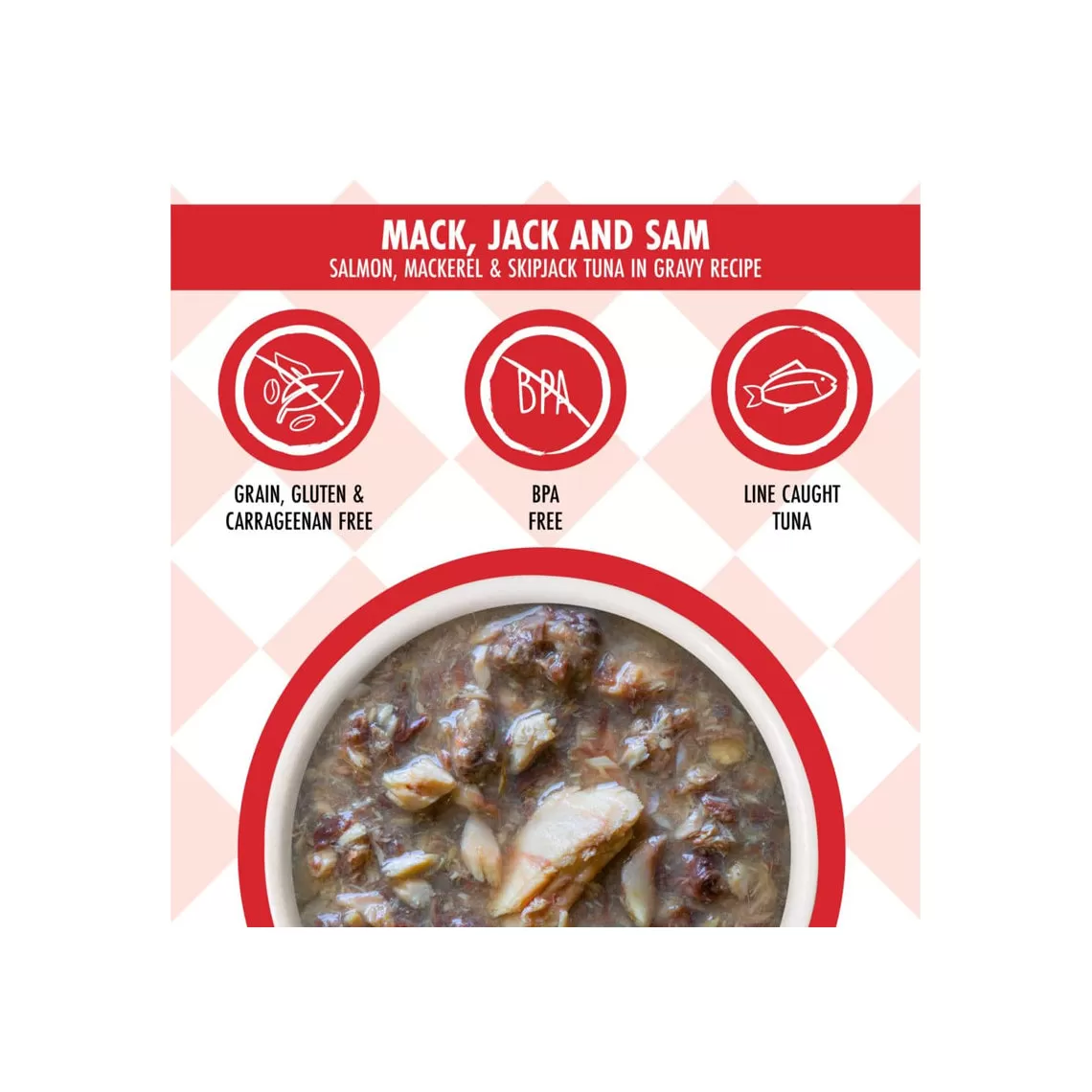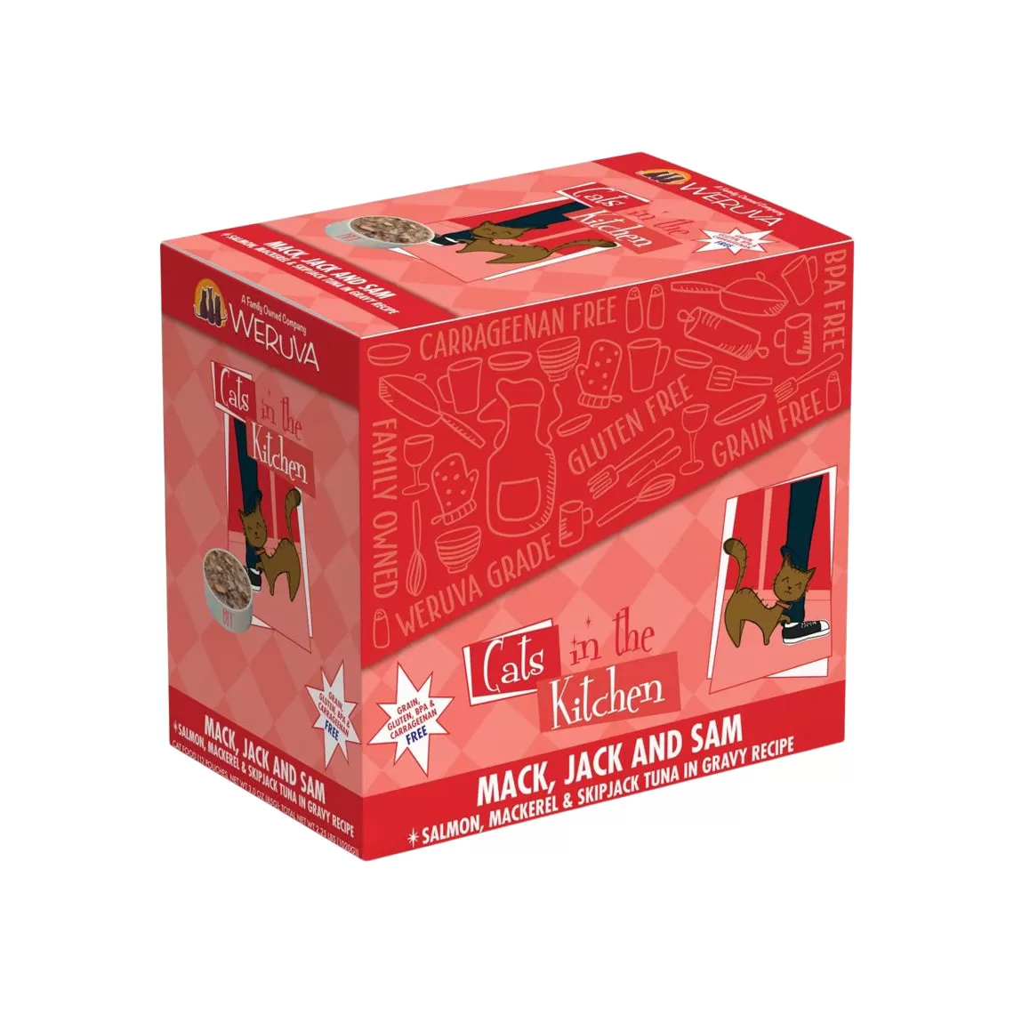 Weruva Mack, Jack and Sam Pouches feature wild caught Salmon, Mackerel and Skipjack Tuna in savory gravy. Completely grain and gluten free, this highly palatable formula features Vitamins B and K and is perfect for your obligate carnivore. These easy-to-open pouches seal in the food’s moisture, which is your cat’s primary source of hydration; they’re also BPA free. Open a pouch and let your cat enjoy Weruva Mack, Jack and Sam.