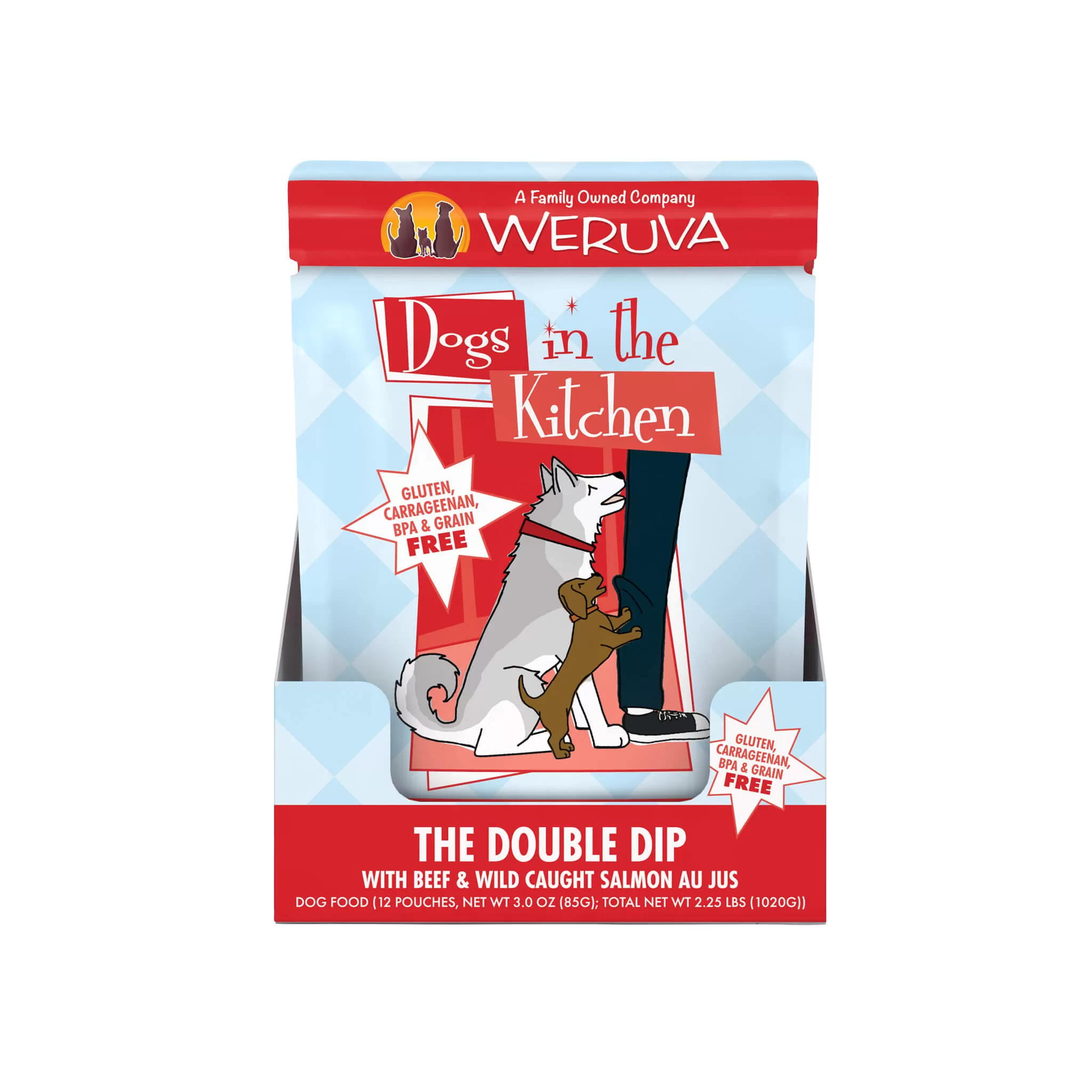 Weruva Dogs in the Kitchen Wet Dog Food was formulated to mimic what your dog would cook if they were in the kitchen. There is a variety of textures and flavors, land and sea proteins, healthy fats and high moisture content to keep your dog hydrated.