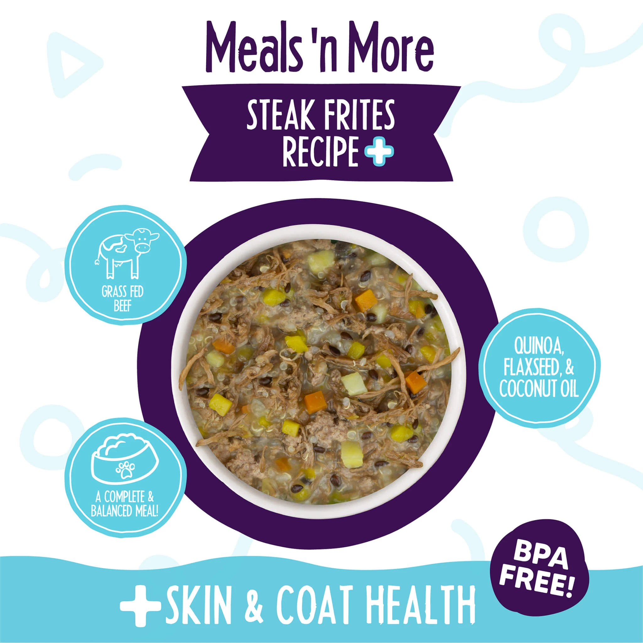 Weruva’s Skin and Coat Dog Food is high in protein, low in fat and high in moisture. Meals n’ More are a complete and balanced meal or can be used as a topper!