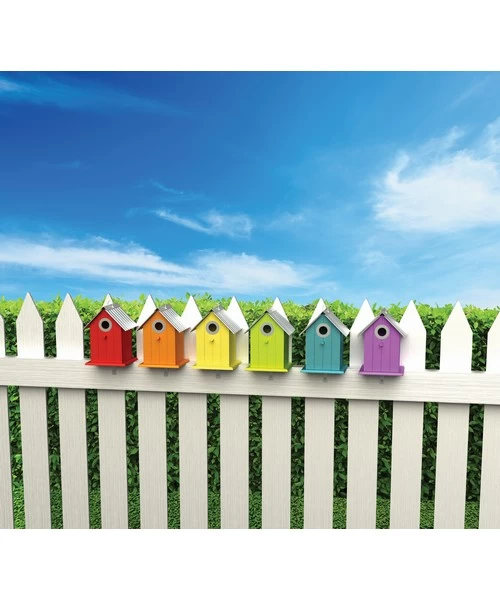 Colorful, Promotional Wren/Chickadee Bird House Assortment with corrugated metal roofs