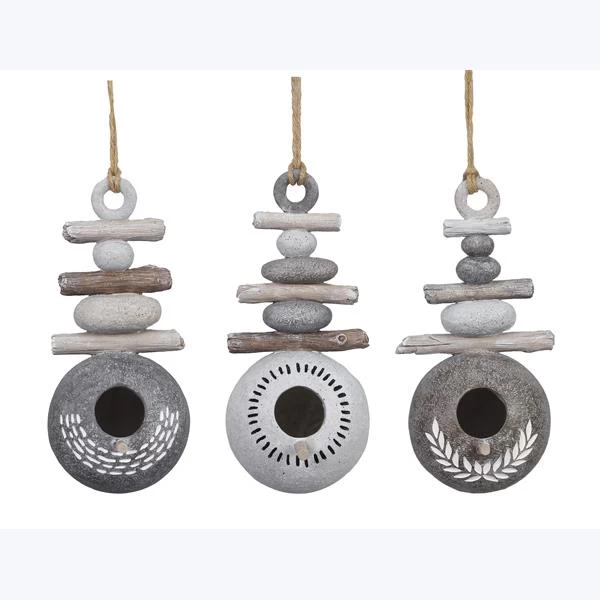 - Resin construction in birdhouse shape includes three pieces
